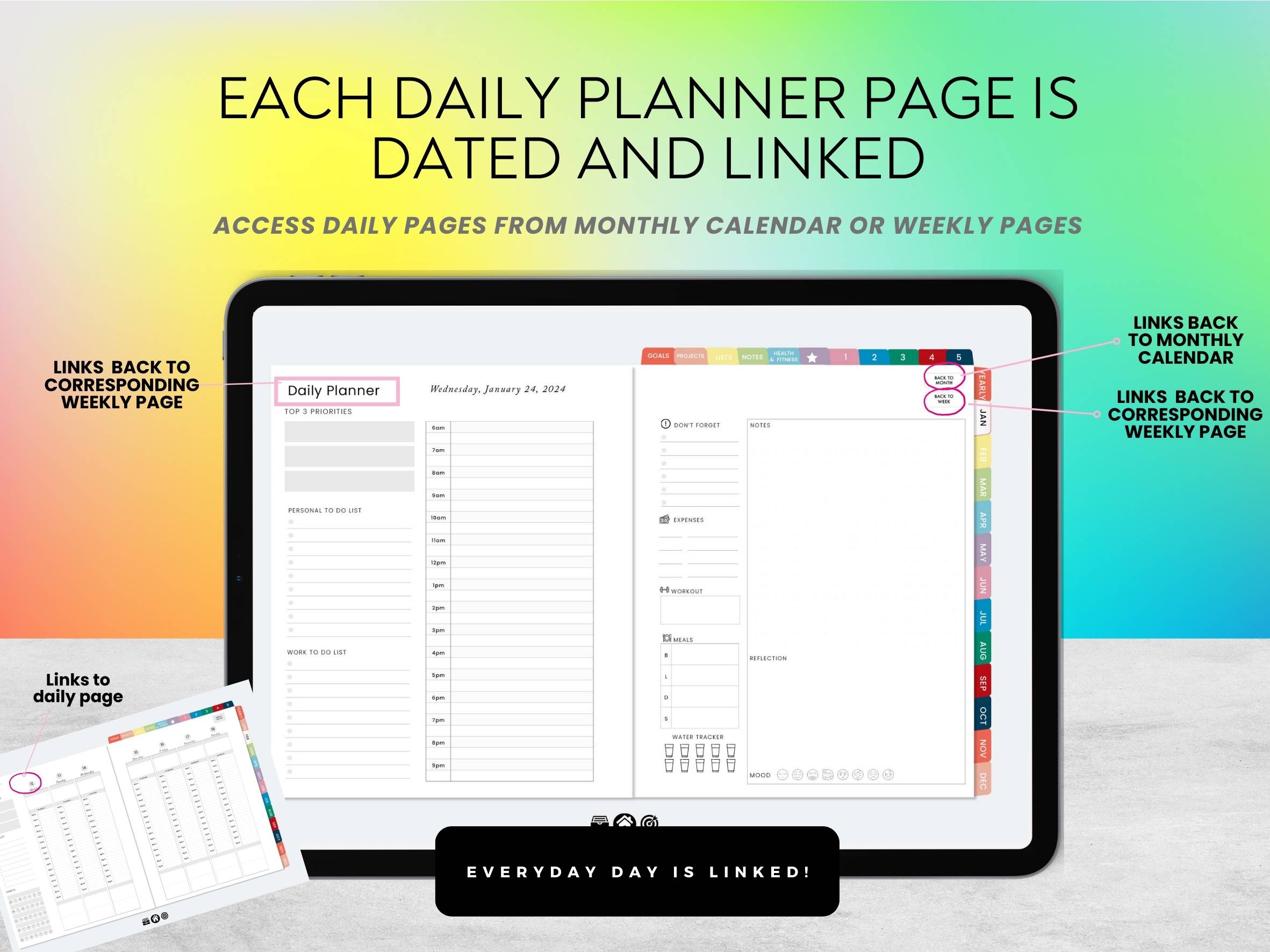 My planners include 5 colored tabs to create your own sections whether it’s for school, business, social media, health and fitness, finances or anything else!