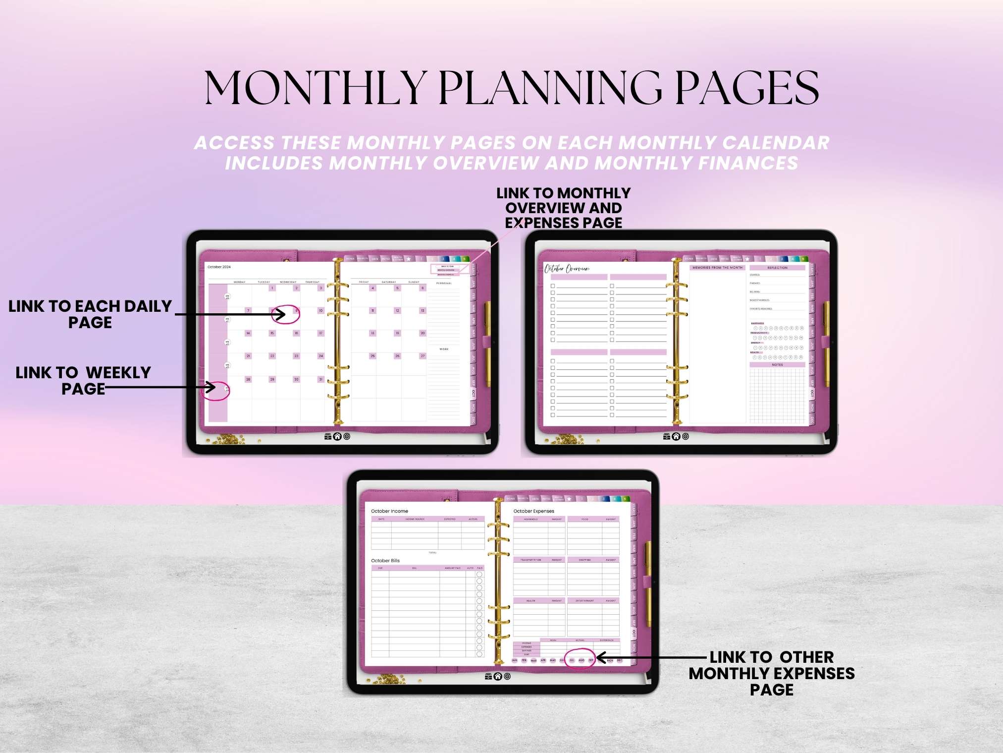 Now that you have your tablet and note-taking app of choice, the next thing you will need is a digital planner to import it into your app! This will have pre-made layouts for your planner, links to easily navigate your planner. I have a video on how to import your file if you need help.