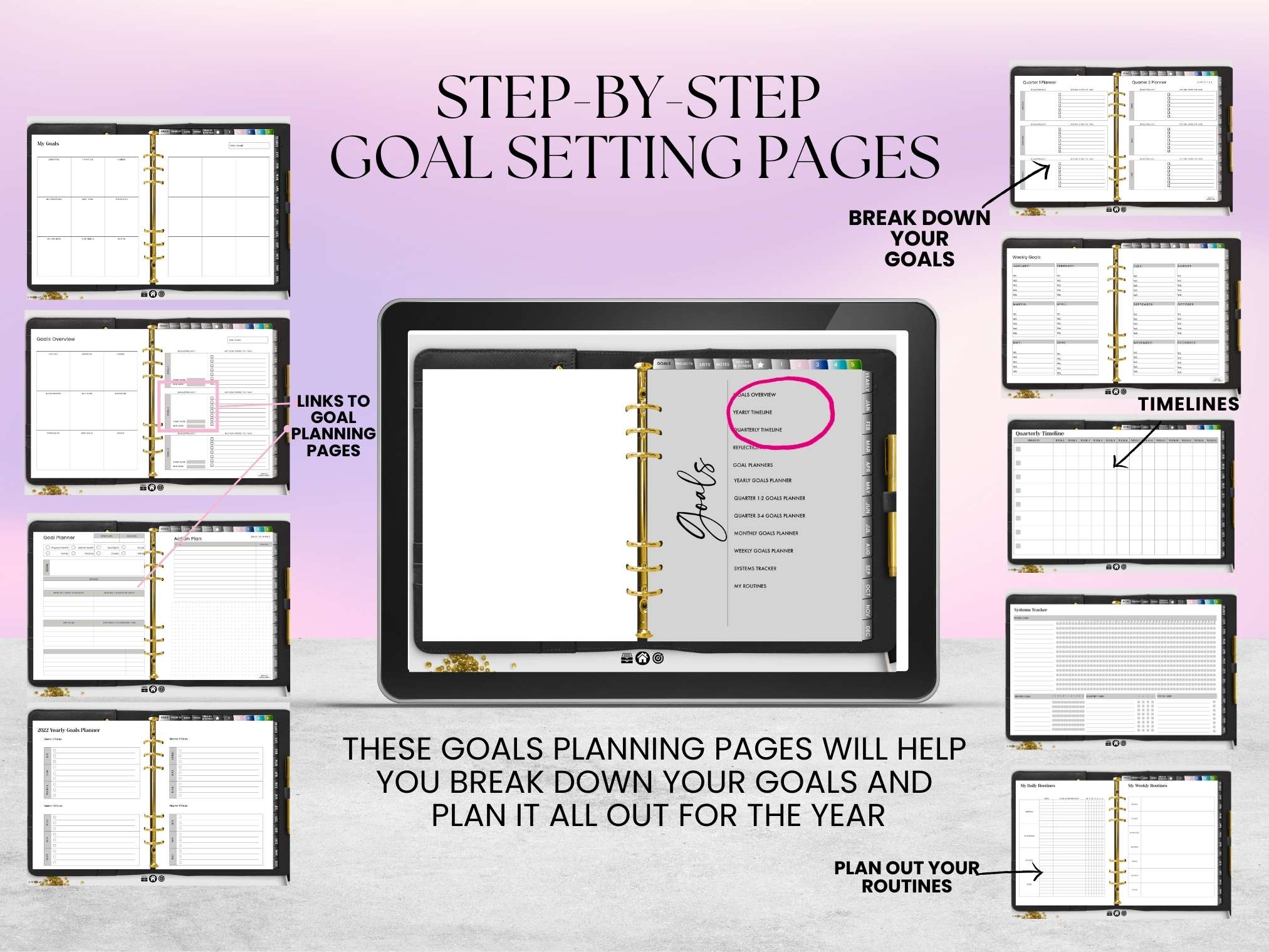 We don't just plan our yearly goals, this planner walks you through how to break them down from year, to quarter, to month, to week and to what you should be doing every single day!