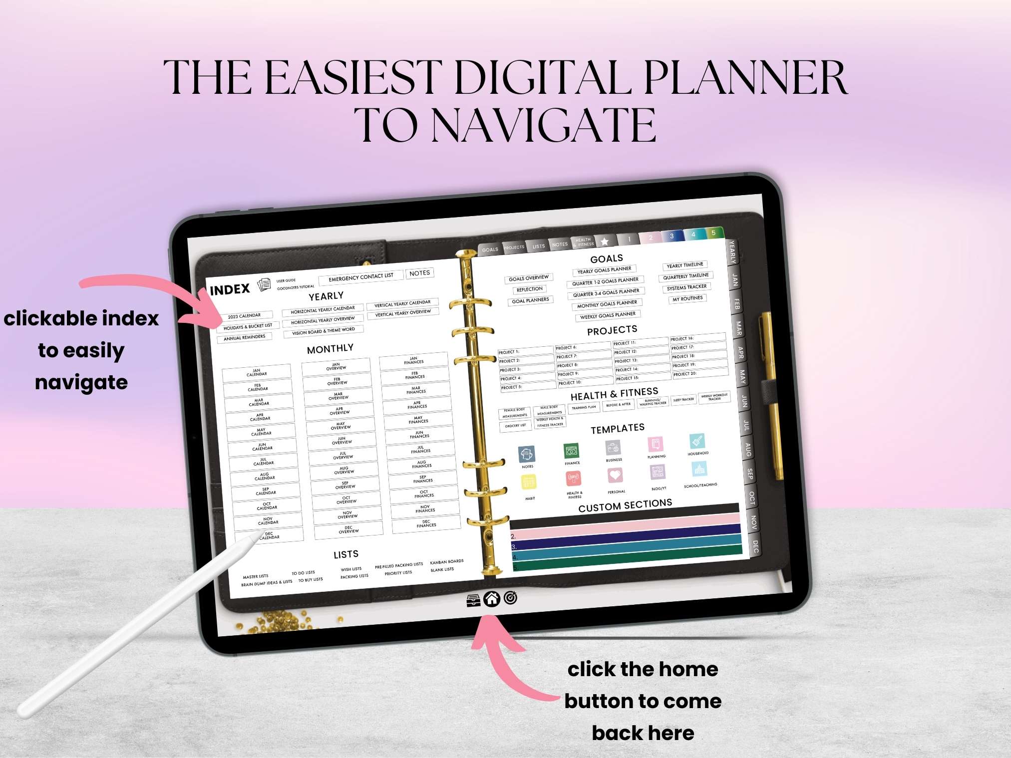 Digital planners are just like paper planners that you can write on just in a digital format. They are hyperlinked PDF files that you can use inside of your PDF annotation app. To get the pen to paper feel, all you need is a stylus like the apple pencil to “write on it”.