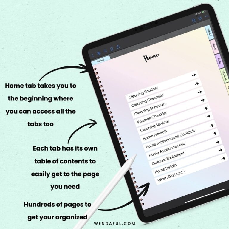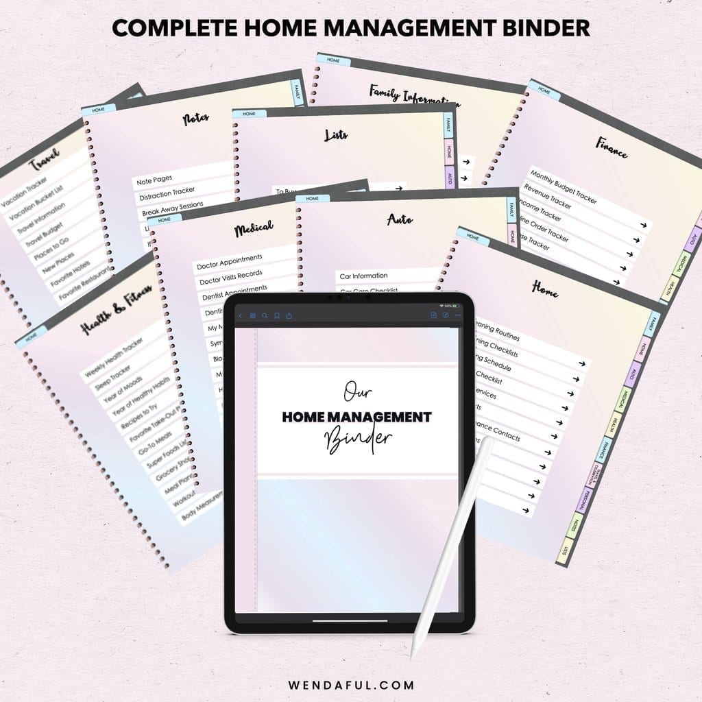 This digital home management binder can hold all of your important information at your fingerprints. You can print it out or simply put it into a PDF annotation app, and write or type directly on it. Take it everywhere with you and use it on all of your devices.